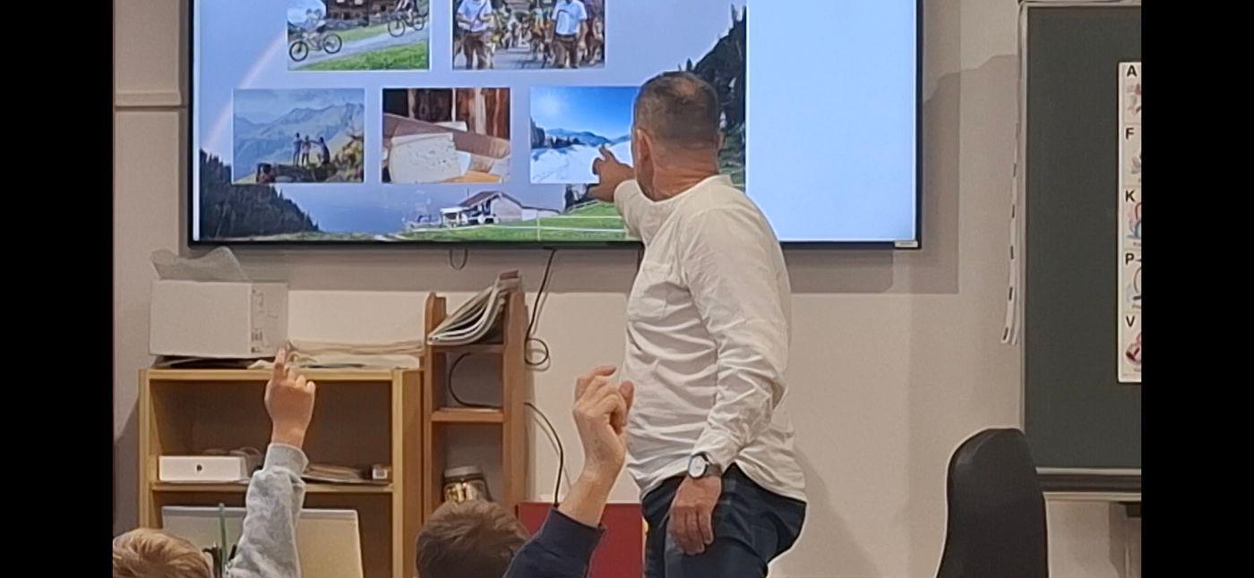 Vor den Herbstferien besuchte Herr Peter Fuchs, auch "Almfuchs" genannt, die 2b Klasse.