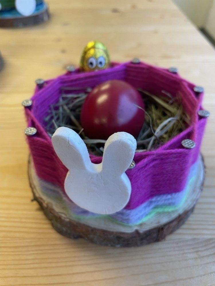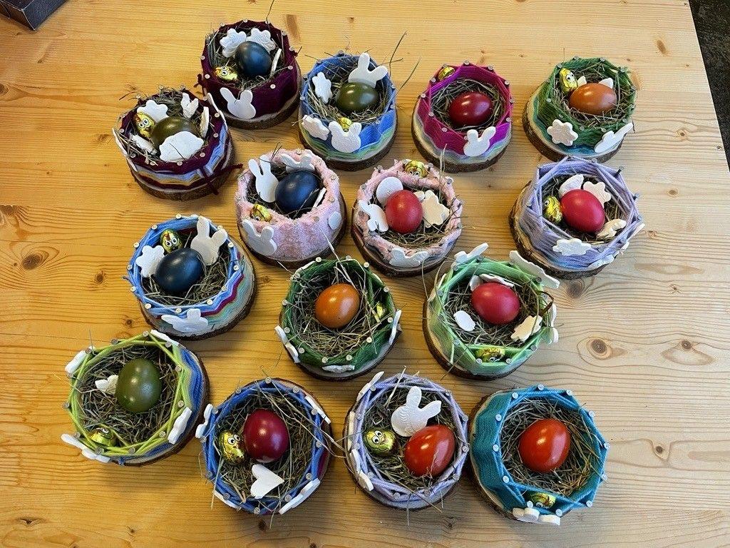 Die Kinder haben ihre Osternester mit viel Freude fertig gebastelt. Und obwohl draußen noch Schnee lag, hat der Osterhase – vielleicht sogar Stups, der kleine Osterhase – den Weg zur Schule gefunden. Heimlich hoppelte er von Nest zu Nest und legte für jedes Kind eine kleine Überraschung hinein.