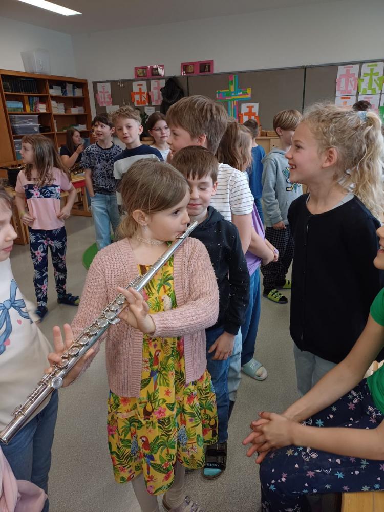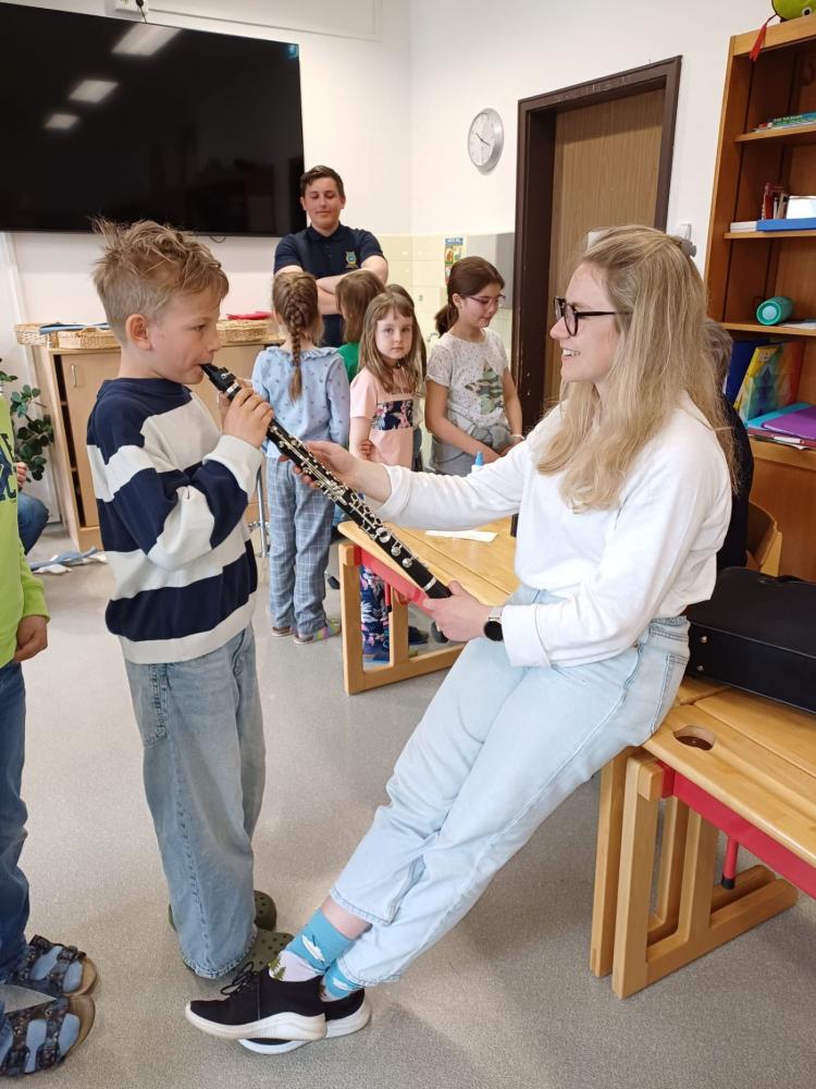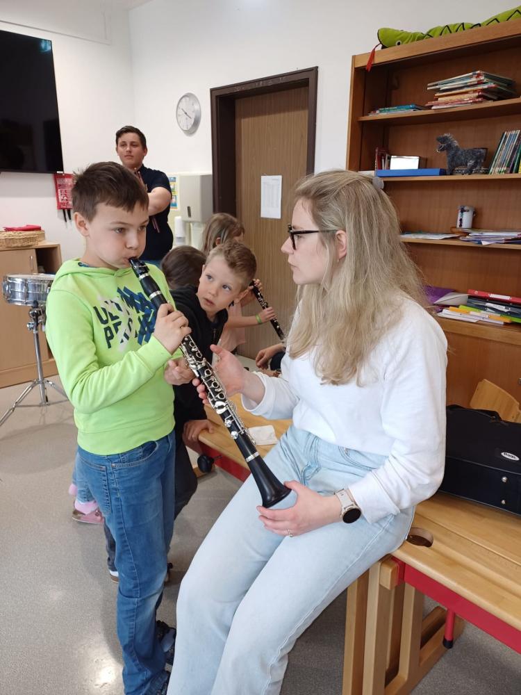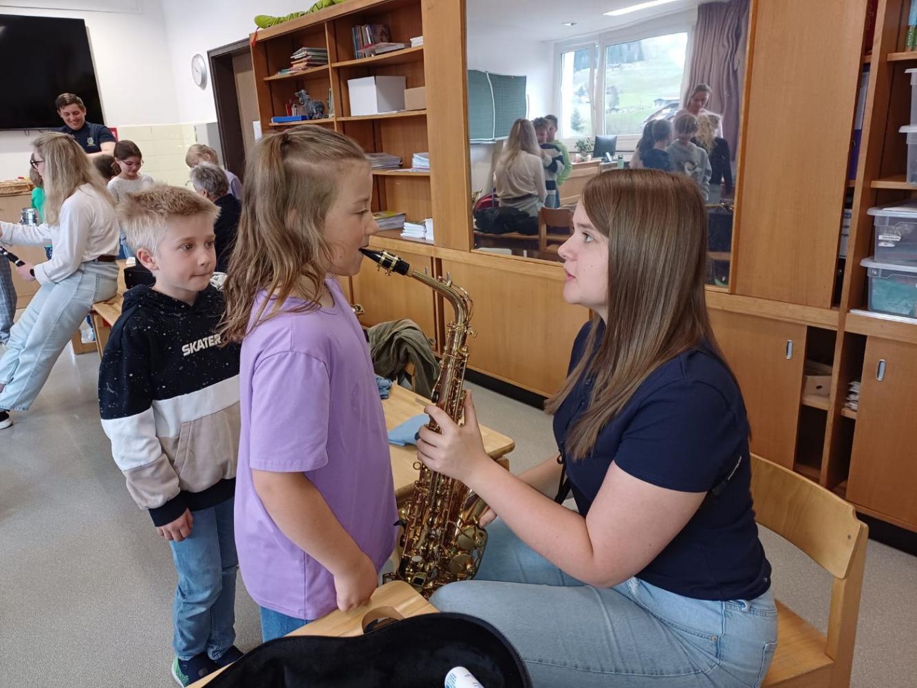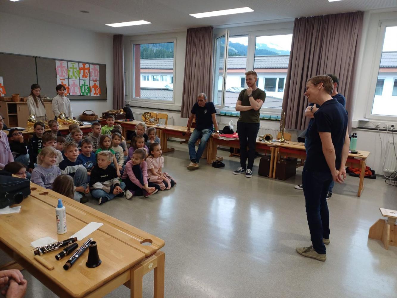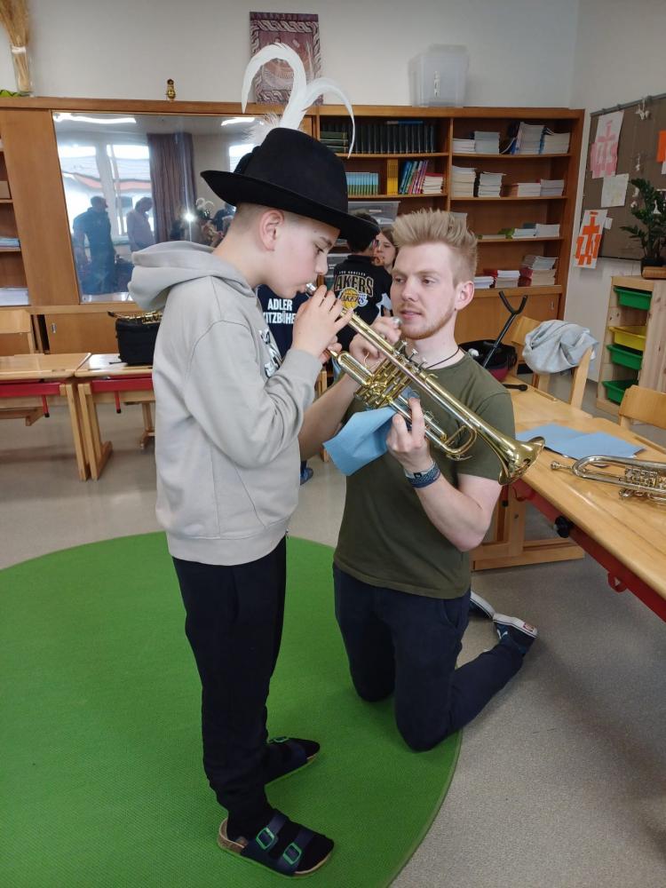 Die Musikkapelle Kirchberg hat unsere Schule besucht und viele spannende Instrumente mitgebracht. Die Musikerinnen und Musiker zeigten uns, wie die Instrumente klingen. Wir durften ganz nah zuhören und sehen, wie man die Instrumente hält und spielt. Unter fachkundiger Anleitung durften die Schülerinnen und Schüler selbst erste Klänge erzeugen und sich von den verschiedenen Tonfarben inspirieren lassen. Besonders aufregend war, dass wir sogar die Trachtanziehen durften und uns wie echte Musikantinnen und Musikanten fühlten. Die ganze Klasse hatte viel Spaß, und viele Kinder bekamen richtig Lust, später einmal selbst ein Instrument zu lernen.