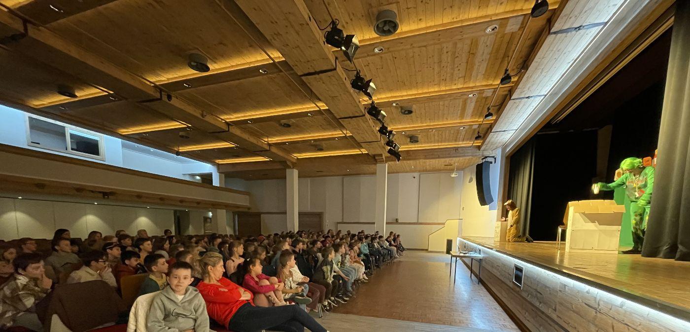 Gestern durften unserere SchülerInnen das Theaterstück „Der raffinierte Zucker“ in der arena365 in Kirchberg besuchen. Die Geschichte erzählt von einem cleveren Zucker, der mit einem raffinierten Plan versucht, Kinder an seine Produkte zu binden. Doch Lanny Lion und Kimmy Chamäleon durchkreuzen seine Pläne gemeinsam mit den Kindern.
