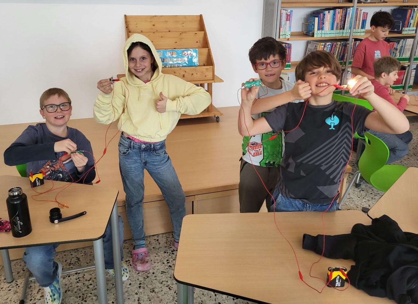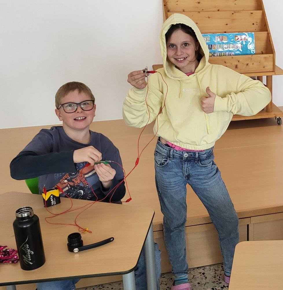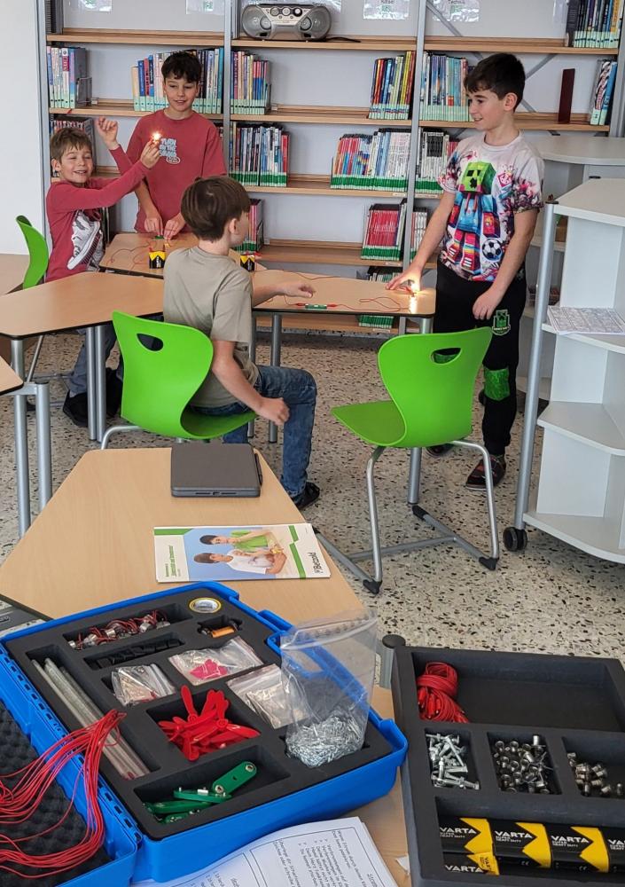 Im Rahmen unseres MINT-Schwerpunktes arbeiten die Schüler:innen der 4. Klassen am Projekt „Energie erleben und verstehen“. Dank der Unterstützung durch die MINT-Schecks konnten wir Experimentierkoffer zum Thema Strom und Energiequellen anschaffen.