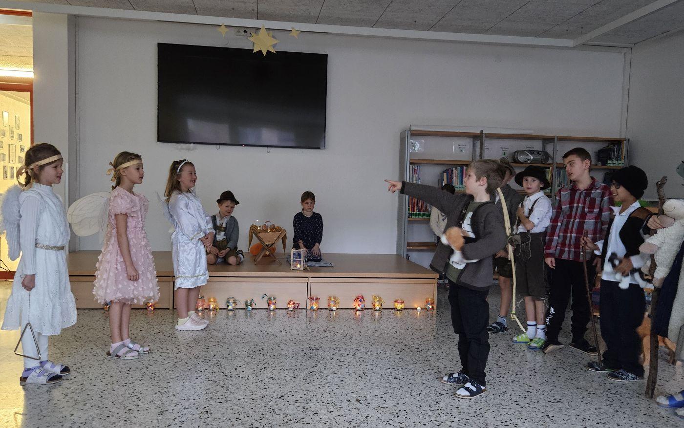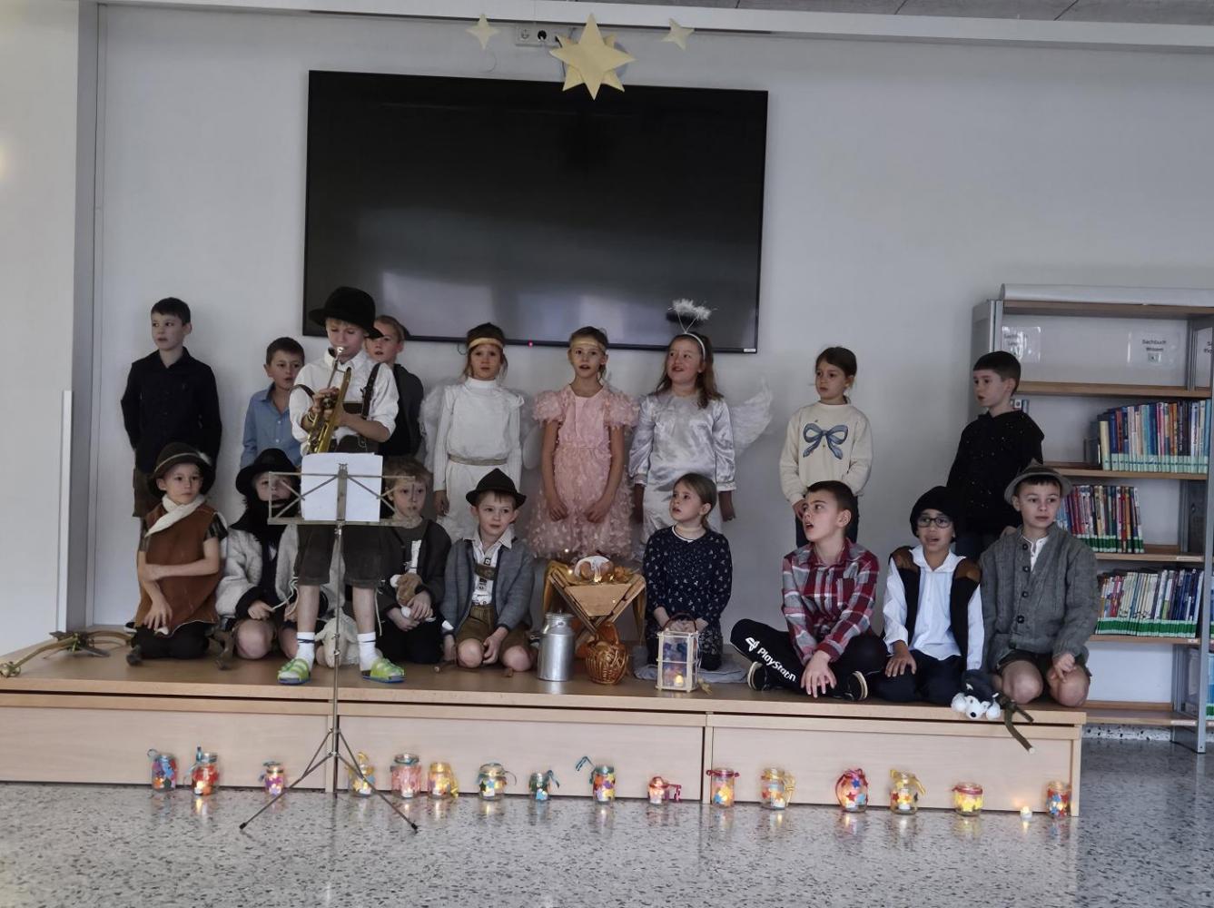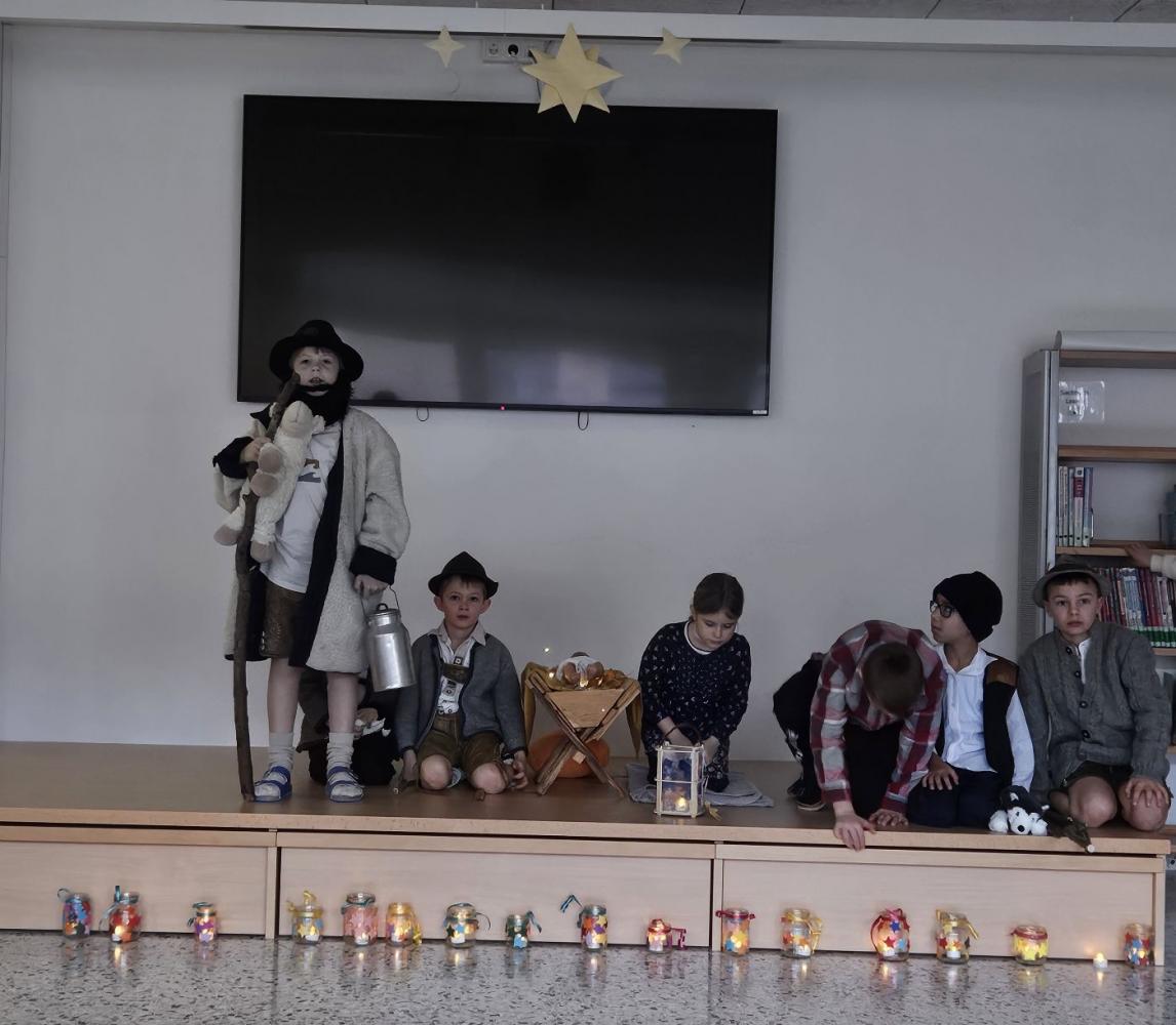 In den letzten Wochen hat die 2a Klasse mit viel Freude, Geduld und einer guten Portion Aufregung an ihrem Krippenspiel gearbeitet. Aus kleinen Ideen wurden nach und nach richtige Szenen, und man konnte von Probe zu Probe sehen, wie sehr die Kinder in ihre Rollen hineingewachsen sind. Alle haben sich gegenseitig geholfen, sich Mut gemacht und gemeinsam etwas richtig Schönes auf die Beine gestellt.