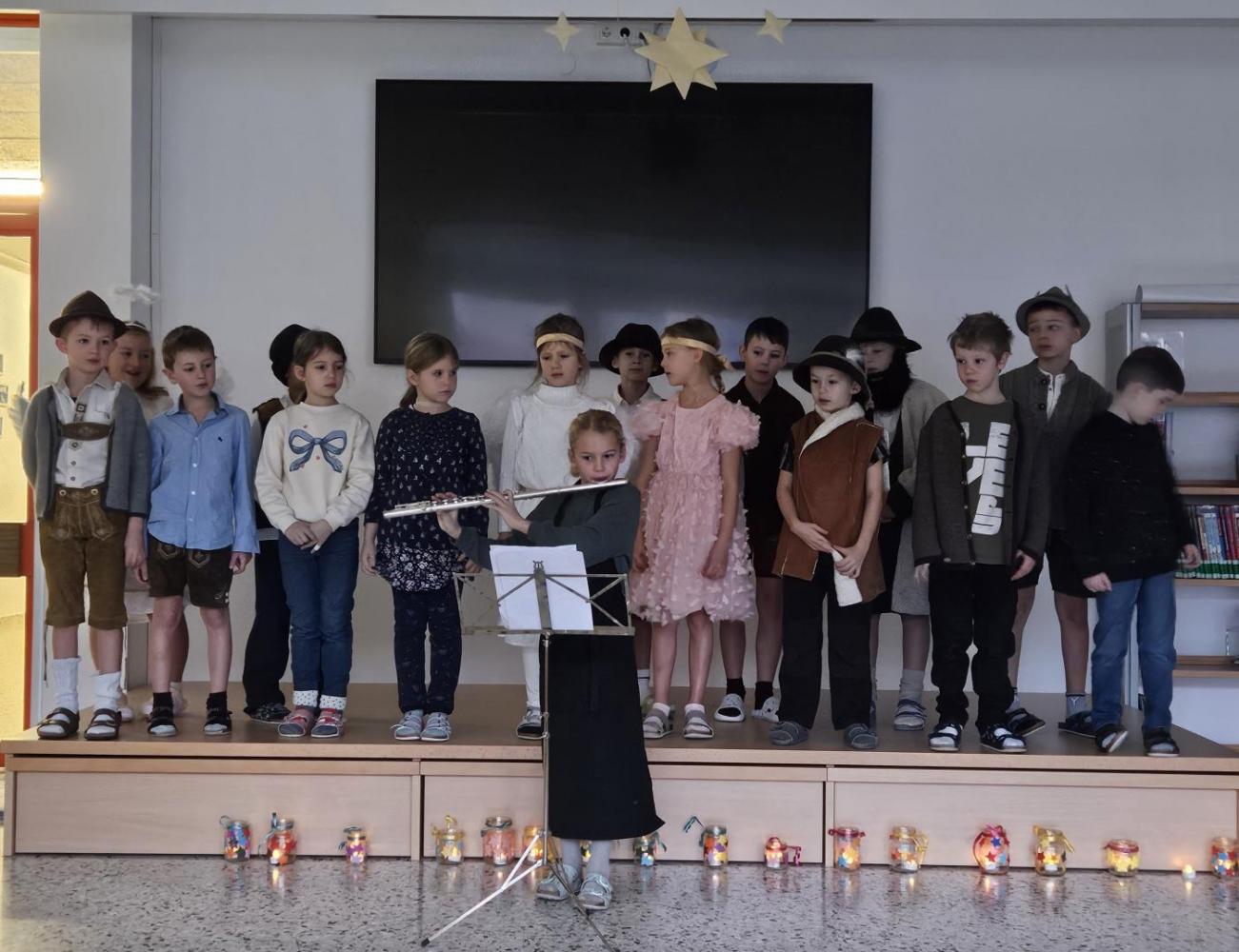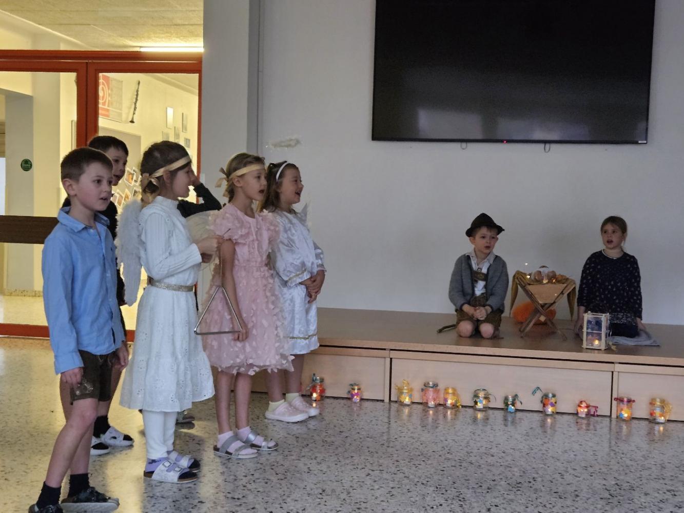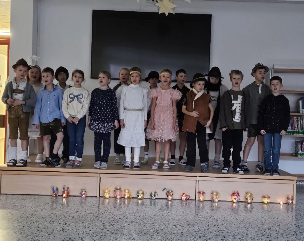 In den letzten Wochen hat die 2a Klasse mit viel Freude, Geduld und einer guten Portion Aufregung an ihrem Krippenspiel gearbeitet. Aus kleinen Ideen wurden nach und nach richtige Szenen, und man konnte von Probe zu Probe sehen, wie sehr die Kinder in ihre Rollen hineingewachsen sind. Alle haben sich gegenseitig geholfen, sich Mut gemacht und gemeinsam etwas richtig Schönes auf die Beine gestellt.