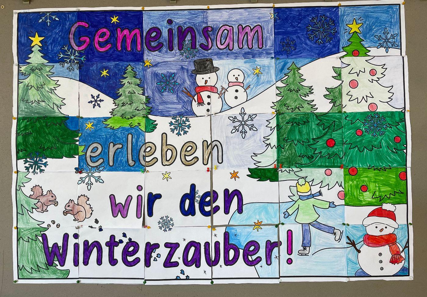 Ein besonderes Highlight war unser kooperatives Gemeinschaftsbild zum Thema Winter. Aus vielen kleinen, individuell gestalteten Einzelteilen entstand ein großformatiges Kunstwerk. Um ein harmonisches Gesamtbild zu schaffen, mussten sich die Kinder im Team über Farben und Muster abstimmen – eine schöne Übung in Zusammenarbeit und Rücksichtnahme.