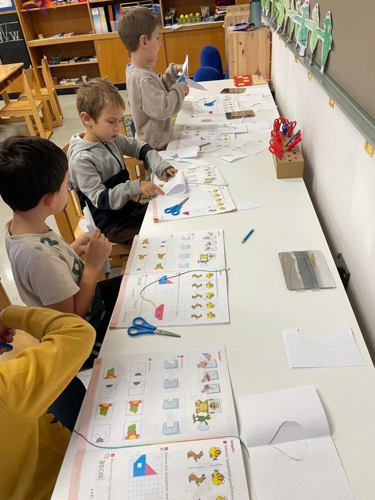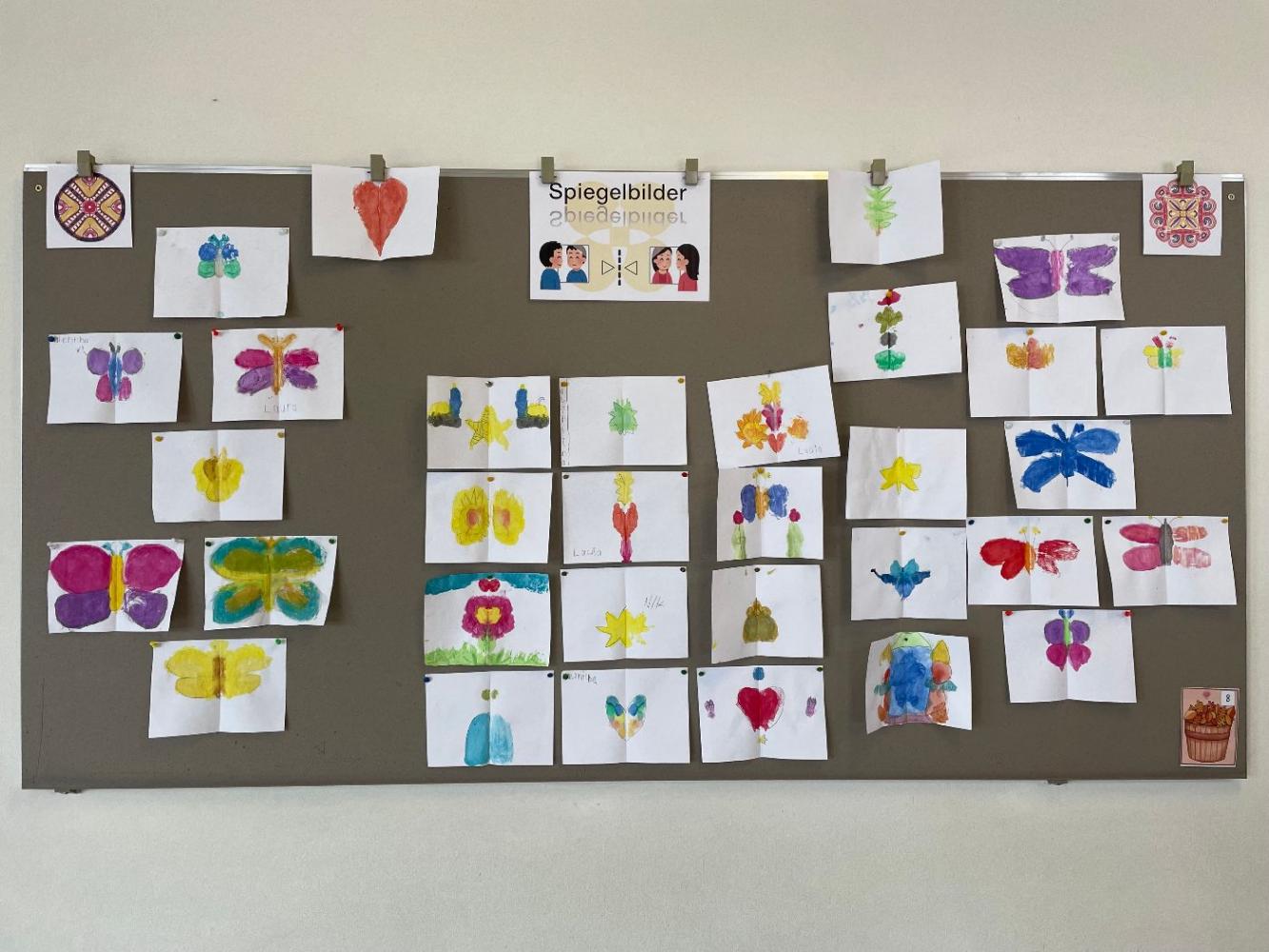 Im Deutschunterricht ging es mit dem Laut Ww weiter am Buchstabenplan, während in Mathematik das spannende Thema „Spiegeln“ auf dem Programm stand. Die Kinder erforschten Spiegelungen in allen möglichen Varianten:
