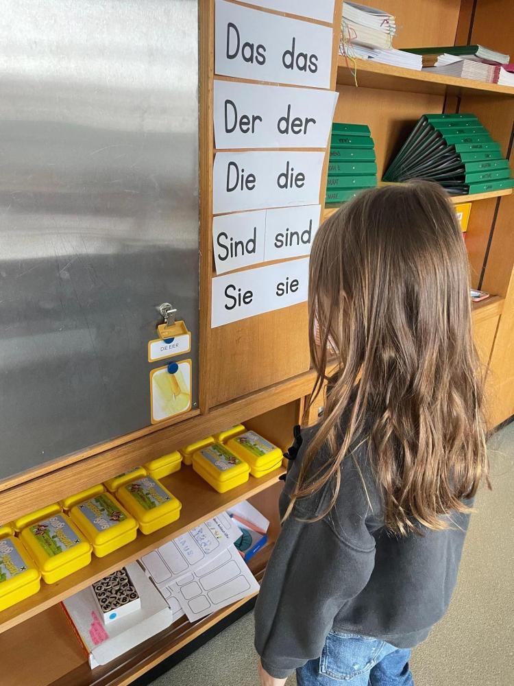 Nachdem die Klassenlehrerin der 1b zu Fasching ihre Bienen-Kolleginnen als Imkerin in Schach hielt, wurde die Ausrüstung und Arbeit eines Imkers im Sachunterricht genauer erforscht. Wie kommt der Honig aus einer Bienenwabe ins Glas? Die Kinder wissen nun Bescheid. Aber fast noch spannender war zu sehen, wie der Honig überhaupt erstmal in die Wabe kommt! Es heißt nicht umsonst "fleißige Biene". Und was frisst so eine Biene überhaupt? Zum Beispiel Bienenbrot - das und Honig - wurde natürlich auch verkostet! Hmm...