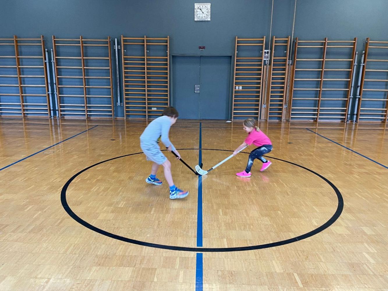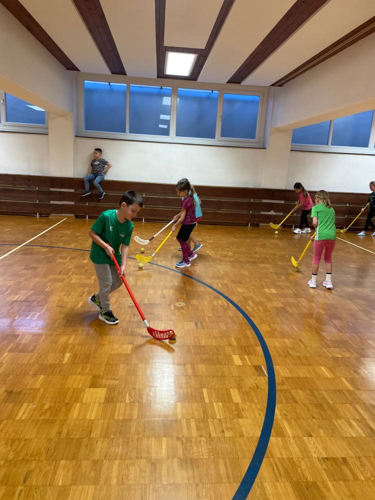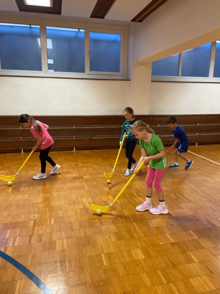 Da der Schnee fehlte, entstanden statt Bobbahnen kreative Kugelbahnen, die gemeinsam gebaut und verbessert wurden. Außerdem lernten die Kinder (Land-)Hockey kennen: Dribbeln, Passen, Schießen und kleine Duelle sorgten für viel Bewegung.